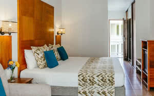 Supérieures (avec balcon privatif tourné vers l'Océan), 4 Suites Junior (Avec un large espace de vie équipé d'un salon et d'un balcon privatif spacieux à proximité immédiate du lagon), et 14 Suites Famille (2 chambres communicantes)
