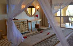 Ces chambres sont climatisées et équipées de : lit king -size - salle de bain avec douche et toilettes - sèche-cheveux - moustiquaire - télévision - mini bar avec boissons - coffre-fort - café et thé en chambre - Wi-Fi gratuit
